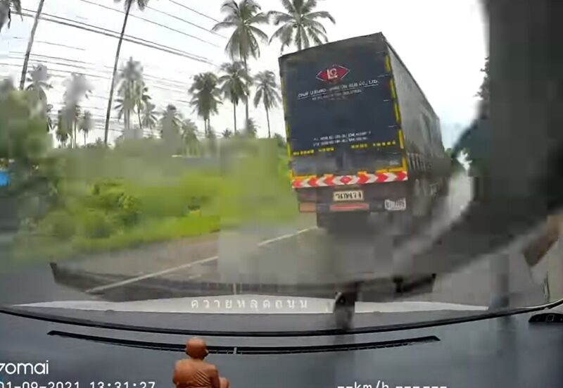 พอครั้งที่ 2 ผมออกขวาไป เขาก็ตบเข้าข้างรถผมอีกทีหนึ่ง ครั้งที่ 3 ผมก็พยายามจะเหยียบหนี แต่เขาก็เหยียบตามแล้ว ตบเข้าท้ายรถผม ทำให้รถหมุน ไปฟาดกับเทลเลอร์จนลงข้างทาง