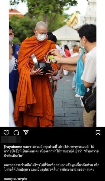 แต่ล่าสุดก็มีเรื่องให้แฟนคลับทนไม่ไหว จนออกโรงเตือน เมื่อมีผู้ไม่หวังดีตามก่อกวนพระ โดยมีการลงชี้แจงผ่านอินสตาแกรม ‘jirayuhome’ โดยระบุว่า…