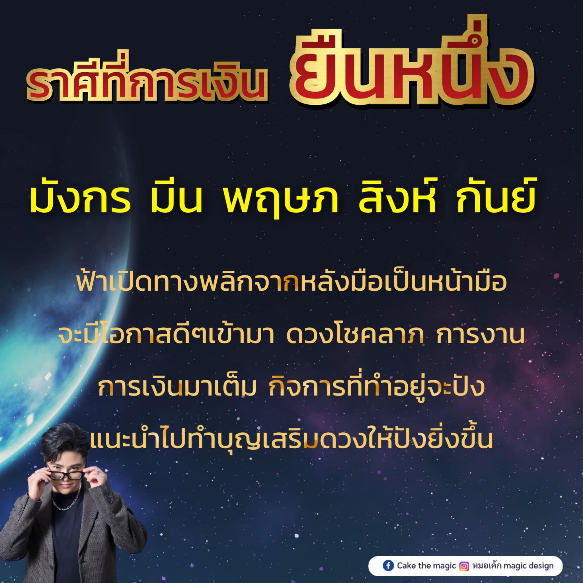 หมอเค้กMagic Design เผยถึงดวงชะตาราศีที่การเงินยืนหนึ่ง ฟ้าเปิดทางพลิกจากหลังมือเป็นหน้ามือ จะมีโอกาสดีๆ เข้ามา ดวงโชคลาภ การงาน การเงินมาเต็ม กิจการที่ทำอยู่จะปัง แนะนำไปทำบุญเสริมดวงให้ปังยิ่งขึ้น